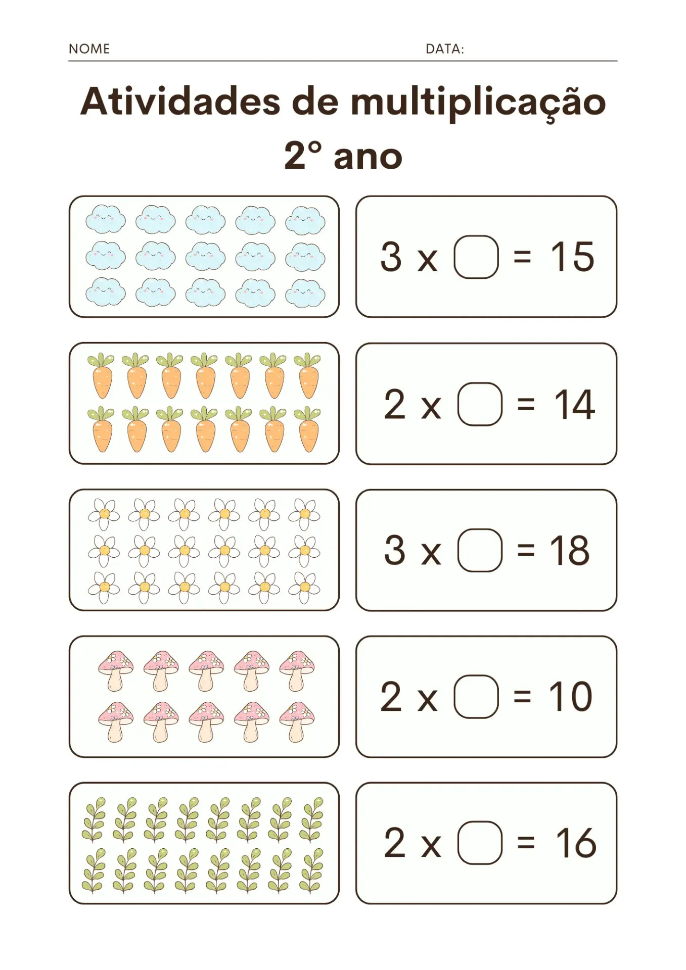 Atividades de multiplicação simples para o 2º ano com jogos, desenhos e problemas do dia a dia. Aprenda de forma prática e divertida!